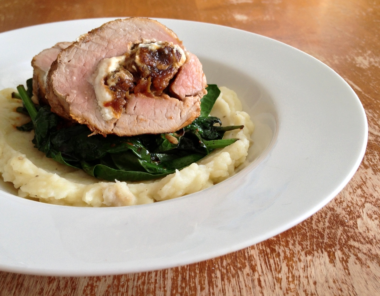 FILET DE PORC FARCI AUX DATTES, AU FROMAGE DE CHÈVRE & AUX NOIX DE GRENOBLES