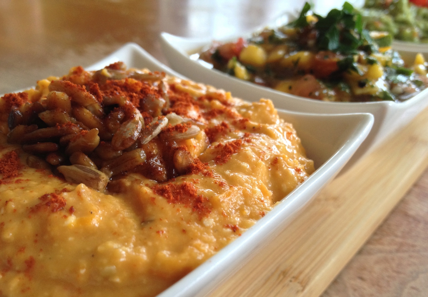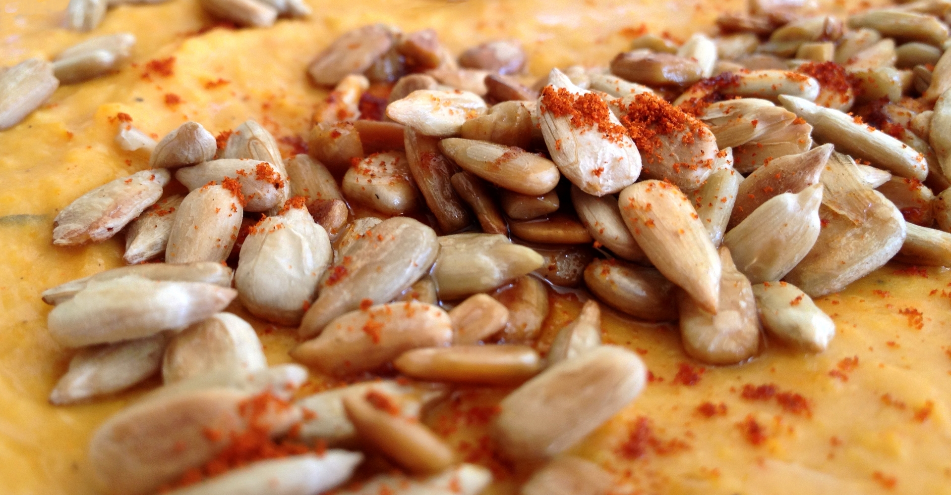 Houmous d’haricots blancs aux poivrons rôtis & aux graines de tournesol