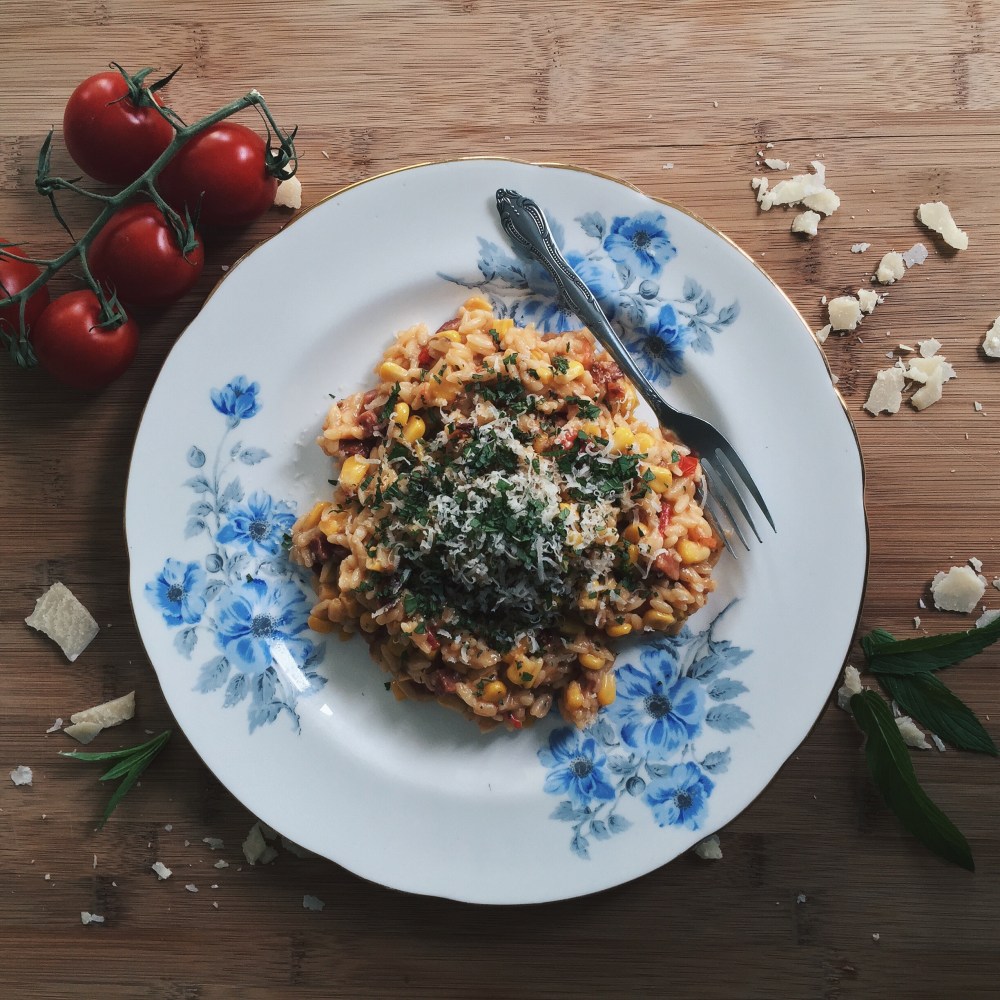 Orzo crémeux aux tomates, au maïs & au parmesan