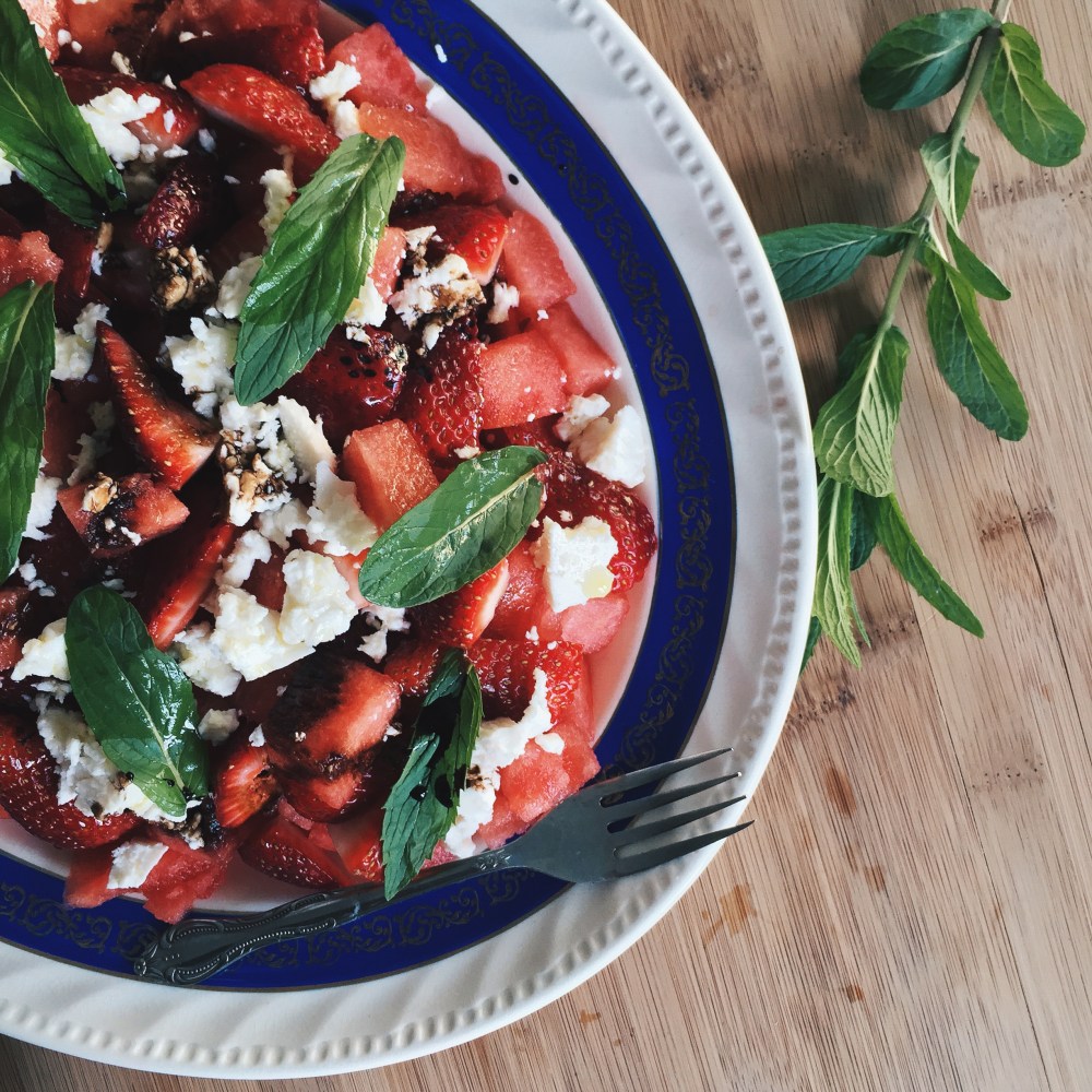 Salade de melon d’eau, fraises & feta