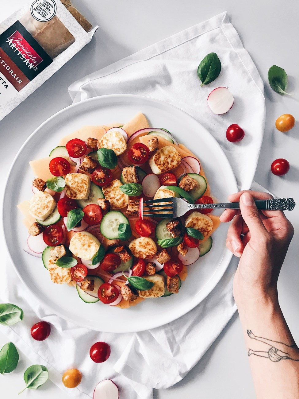 Brunchs & petits-déjeuners, Légumes & salades, Plats principaux végétariens Salade de melon, tomates, concombre, radis, haloumi grillé et croûtons fumés Publié par Maude Bergeron le 20 juillet 201914 mars 2022 Cliquez ici pour découvrir ma recette sur le site de Metro mon épicier! Cliquez pour partager sur Facebook(ouvre dans une nouvelle fenêtre) Facebook Cliquez pour partager sur Pinterest(ouvre dans une nouvelle fenêtre) Pinterest Cliquer pour partager sur X(ouvre dans une nouvelle fenêtre) X Cliquez pour partager sur Tumblr(ouvre dans une nouvelle fenêtre) Tumblr Cliquez pour partager sur Imprimer(ouvre dans une nouvelle fenêtre) Imprimer Similaire